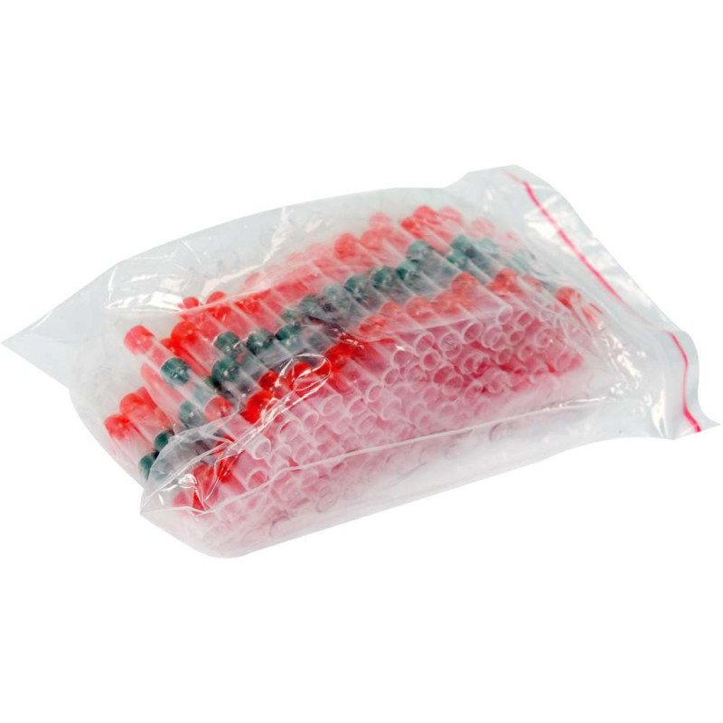 Przezroczyste rurki termokurczliwe YT-81452 z pierścieniem cyny na środku oraz dwoma pierścieniami kleju termicznego po bokach, który dodatkowo uszczelnia połączenie.