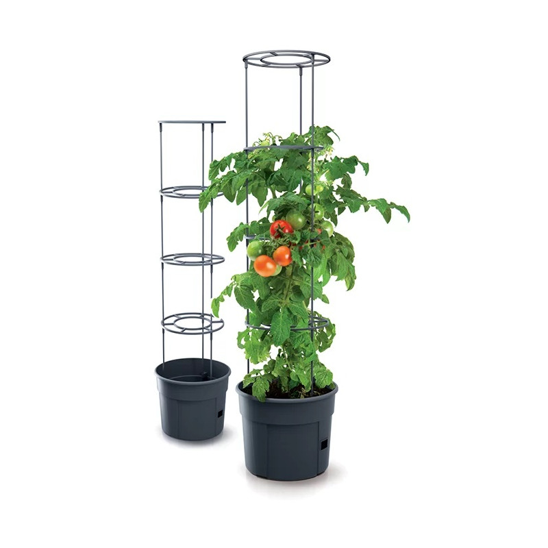 Jednym z kluczowych elementów tego modelu są pierścienie, które stabilizują roślinę. Otaczając krzew pomidora, pierścienie te pomagają utrzymać roślinę w pionie, co jest niezwykle ważne w przypadku pomidorów, które mogą osiągać znaczne rozmiary i potrzebują dodatkowego wsparcia. Stabilizacja plonu za pomocą pierścieni chroni rośliny przed przewracaniem się i uszkodzeniami, co w efekcie przyczynia się do zdrowego wzrostu i obfitych owoców. Doniczka Tomato Grower IPOM400 wykonana jest z materiałów wysokiej jakości, co zapewnia jej odporność na działanie czynników atmosferycznych i długowieczność. Dzięki solidnej konstrukcji i starannemu wykonaniu, doniczka jest odporna na działanie słońca, deszczu oraz innych warunków pogodowych, co gwarantuje jej trwałość i niezawodność w codziennym użytkowaniu.