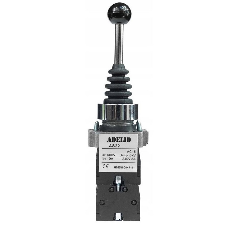 Joystick 4-pozycyjny AS22-J24 od firmy ADELID to zaawansowane urządzenie sterujące, które charakteryzuje się funkcjonalnością chwilową oraz monostabilną. Oznacza to, że joystick wraca do swojej pozycji środkowej po zwolnieniu nacisku, co zapewnia precyzyjne i intuicyjne sterowanie. Jest to szczególnie przydatne w aplikacjach wymagających szybkiego i powtarzalnego dostępu do różnych ustawień.