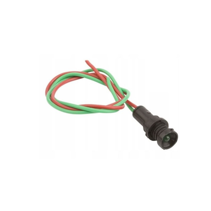 Kontrolka diodowa 5mm zielona 12-24V AC/DC KLP 5G/24V SIMET to wszechstronny element sygnalizacyjny, który łączy nowoczesną technologię z praktycznymi funkcjami, zapewniając jasne i skuteczne oznaczenie w różnych systemach elektrycznych. Jest idealnym wyborem do aplikacji, gdzie wyraźne wskaźniki stanu są kluczowe dla monitorowania i zarządzania sprzętem. Kolor zielony diody zapewnia wyraźne i wyraziste sygnalizowanie stanu lub działania systemu, co jest przydatne w wielu aplikacjach, od systemów automatyki przemysłowej po sprzęt elektroniczny. Średnica klosza wynosząca 5 mm oraz średnica obudowy 12 mm sprawiają, że kontrolka jest kompaktowa i łatwa do integracji z różnymi panelami czy obudowami. Kontrolka jest zaprojektowana do prostego montażu, dzięki średnicy otworu montażowego 10 mm oraz maksymalnej grubości płyty montażowej 8 mm. Długość korpusu wynosząca 30 mm zapewnia stabilne osadzenie, a długość przewodu 300 mm umożliwia elastyczne połączenie z systemem elektrycznym.