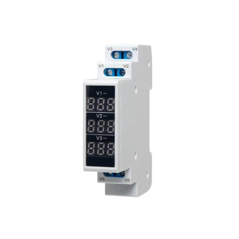 Urządzenie zostało wyposażone w cyfrowy wyświetlacz LED, który umożliwia odczyt aktualnych wartości napięcia w czasie rzeczywistym. Dzięki temu użytkownik może w prosty sposób monitorować stan każdej z faz oddzielnie, co jest szczególnie istotne w instalacjach trójfazowych, gdzie równomierne obciążenie faz jest kluczowe dla stabilnej pracy urządzeń. Wyświetlacz ten prezentuje wartości dla każdej fazy na osobnych ekranach, co ułatwia szybki graficzny odczyt bez konieczności zmiany ustawień czy przełączania między fazami.