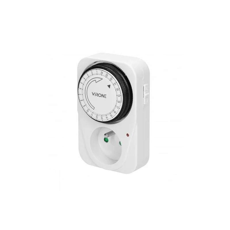 Mechaniczny programator czasowy włączania i wyłączania urządzeń elektrycznych. Pracuje w trybie dobowym. Minimalny czas włączenia/wyłączenia wynosi 15 min.
