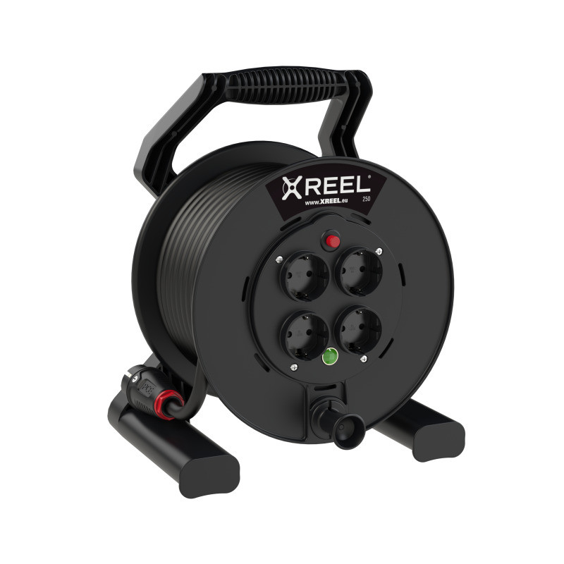 Przedłużacz bębnowy XREEL 3x1,5 20m 230V 4GN PCE to wszechstronne rozwiązanie dla różnych zastosowań w zakresie elektryki, zarówno w warunkach domowych, jak i profesjonalnych. Zapewnia wygodę użytkowania oraz bezpieczeństwo, dzięki przemyślanej konstrukcji i funkcjonalnym elementom. Obudowa przedłużacza została wykonana z tworzywa sztucznego, co zapewnia trwałość i odporność na uszkodzenia mechaniczne. Materiał obudowy jest nie tylko wytrzymały, ale również lekki, co ułatwia przenoszenie i obsługę urządzenia. Przewód, który jest częścią przedłużacza, to H05VV-F z przekrojem 1,5 mm², co oznacza, że jest odpowiedni do zastosowań wymagających średniego natężenia prądu.