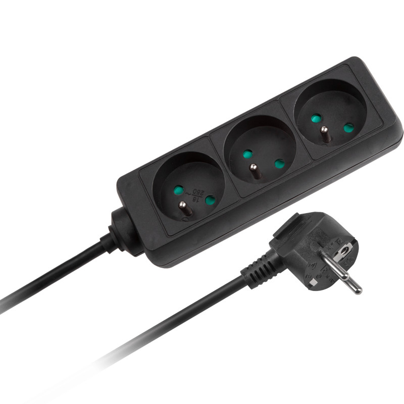 Przedłużacz sieciowy REBEL umożliwia podłączenie dodatkowych urządzeń do sieci zasilania. Wyposażony jest w trzy gniazda, dzięki czemu można podłączyć do niego jednocześnie trzy urządzenia. Umożliwia to łatwiejsze podłączenie urządzeń znajdujących się w dalszej odległości od źródła zasilania.