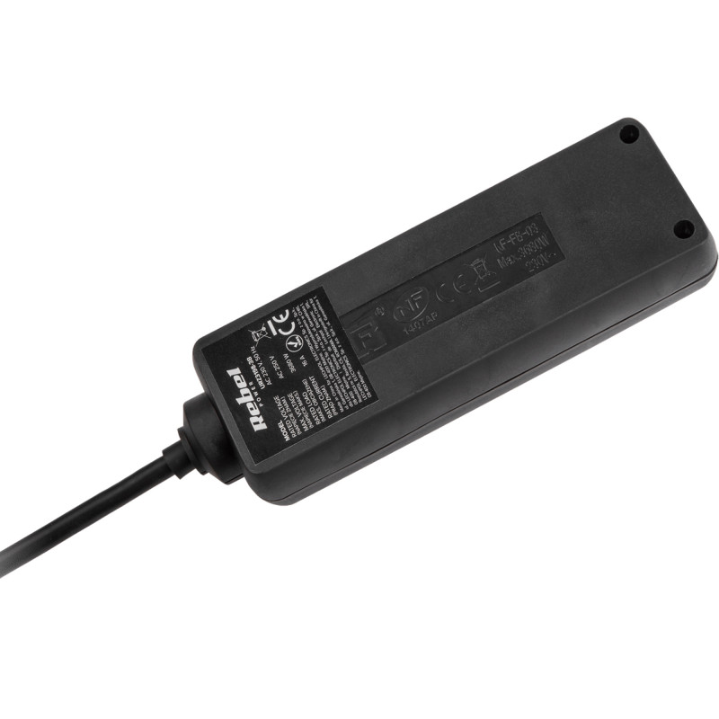 Przedłużacz sieciowy REBEL umożliwia podłączenie dodatkowych urządzeń do sieci zasilania. Wyposażony jest w trzy gniazda, dzięki czemu można podłączyć do niego jednocześnie trzy urządzenia. Umożliwia to łatwiejsze podłączenie urządzeń znajdujących się w dalszej odległości od źródła zasilania.