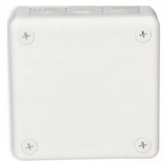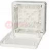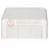 Puszka instalacyjna hermetyczna, gumowe zaślepki, 8-wlotowa kablowych, w kolorze białym. Miejsca posadowienia otworów montażowych dodatkowo zabezpieczone gumowymi zaślepkami, co zapewnia szczelność konstrukcji. Zamykana na cztery plastikowe wkręty zapewni szybki i pewny montaż. Charakteryzuje się stopniem ochrony IP55, który zapewnia wysoką ochronę przed wnikaniem pyłu oraz kropel wody.