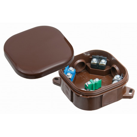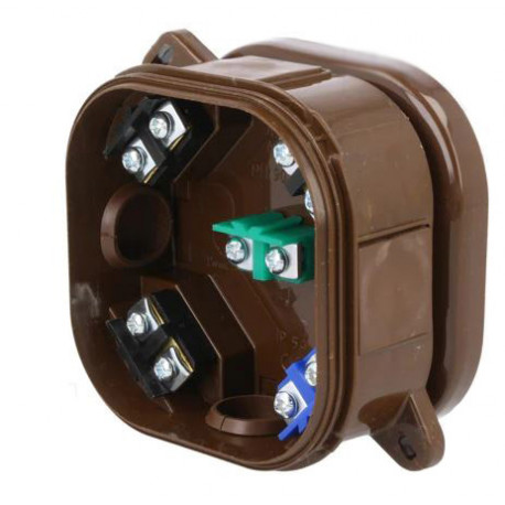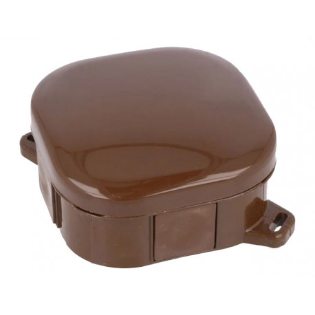 Puszka instalacyjna hermetyczna natynkowa, 5 zacisków, 4 wloty, kolor brązowy. Puszka posiada wymiary 92x92x44mm. Wykonana została z wytrzymałego tworzywa, co zapewnia jej trwałość i brak odkształceń. Posiada 4 wloty zabezpieczone gumowymi dławikami. Zamykana na klik. Charakteryzuje się stopniem ochrony IP54, który zapewnia wysoką ochronę przed wnikaniem pyłu oraz kropel wody.