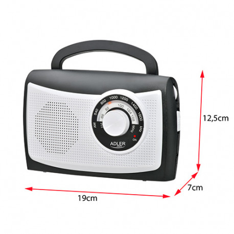 Radio Adler to przenośne radio, które doskonale sprawdza się zarówno w miejscu pracy, jak i w domu. Radio może być zasilane prądem zmiennym lub 4 bateriami R14. Charakteryzuje się wysoką niezawodnością i odpornością na czynniki zewnętrzne. Radio odbiera audycje nadawane na falach ultrakrótkich i centymetrowych. Dla osób, które wolą słuchać indywidualnie posiada wejście na słuchawki.