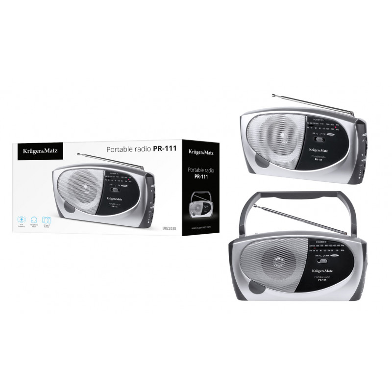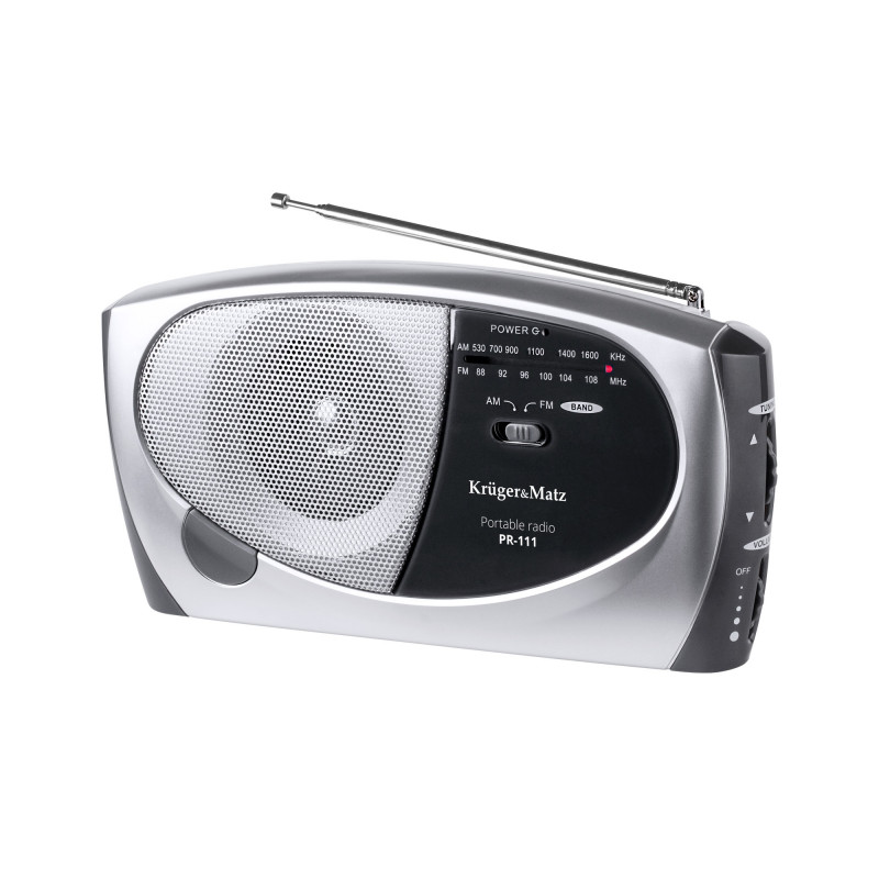 Radio Kruger&Matz PR-111 to niewielkie przenośne radio, które doskonale sprawdzi się wszędzie. Dzięki możliwości zasilania go zarówno prądem zmiennym, jak i bateriami, urządzenie będzie nie tylko idealne do domu, ale bez problemu pozwoli zrelaksować się przy ulubionej audycji radiowej w plenerze. Radio posiada antenę teleskopową, dzięki której bardzo dobrze odbiera fale radiowe.