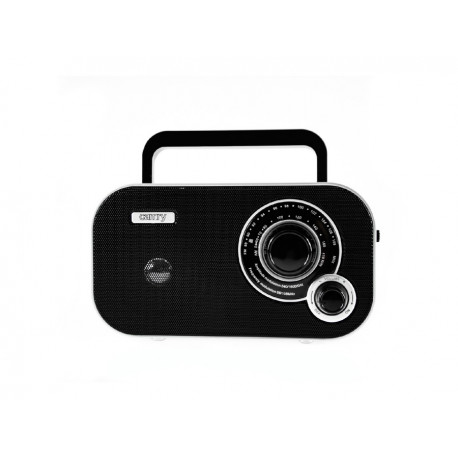 Niewielkie, przenośne radio z wejściem słuchawkowym, świetnie sprawdzi się zarówno w pracach zewnętrznych, jak i w zaciszu domowym. Odporne na czynniki zewnętrzne, dzięki wytrzymałej obudowie. Zakres częstotliwości AM: 530 – 1600 KHz, zakres częstotliwości FM: 88 – 108 MHz. Posiada obrotową, teleskopową antenę, co pozwala złapać zasięg tam, gdzie inne radia zawodzą.Zasilany bateryjne (4 x AA) lub sieciowo 230V~50Hz - przewód zasilający w zestawie.