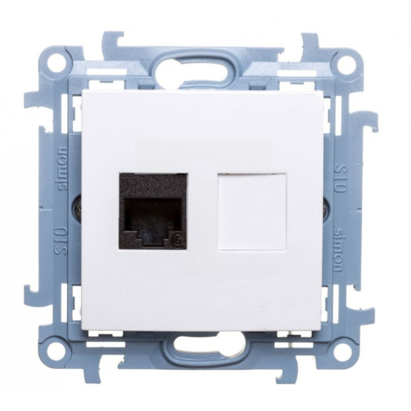 SIMON10 Gniazdo komputerowe pojedyncze kat.6 RJ45 śrubowy C61.01/11 białe