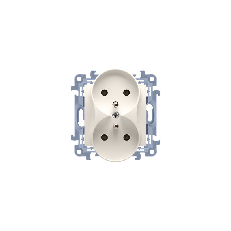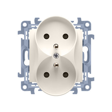 Simon10 Gniazdo wtyczkowe podwójne z uziemieniem śrubowy CGZ2M.01/41 kolor kremowy