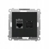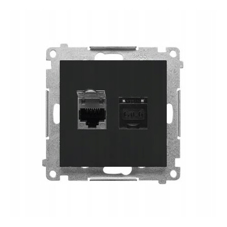 Simon55 Gniazdo komputerowe podwójne RJ45 kategoria 6 to moduł przeznaczony do podłączenia dwóch urządzeń sieciowych w jednej instalacji. Wykonany z bezhalogenowego tworzywa PC w kolorze czarnym mat, gwarantuje trwałość i estetyczne wykończenie. Produkt posiada przesłonę przeciwkurzową, chroniącą złącza RJ45 przed zabrudzeniami i kurzem. Montaż podtynkowy pozwala na dyskretne i wygodne wkomponowanie gniazda w system modułowy Simon55.