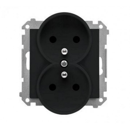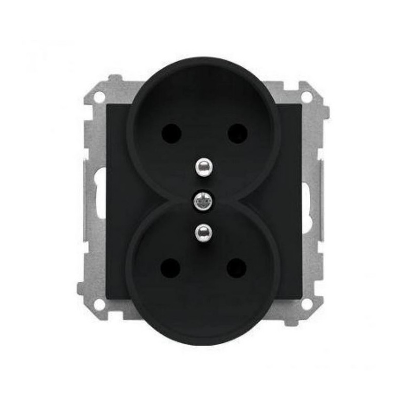 Simon55 Gniazdo wtyczkowe podwójne z uziemieniem to praktyczne i bezpieczne rozwiązanie do instalacji elektrycznych w domu i biurze. Produkt wyposażony jest w przesłony torów prądowych, które zwiększają bezpieczeństwo użytkowania. Wykonany z bezhalogenowego tworzywa PC w kolorze czarnym mat, doskonale komponuje się z nowoczesnymi wnętrzami. Dzięki montażowi podtynkowemu i systemowi szybkozłączy, instalacja gniazda przebiega szybko i sprawnie.
