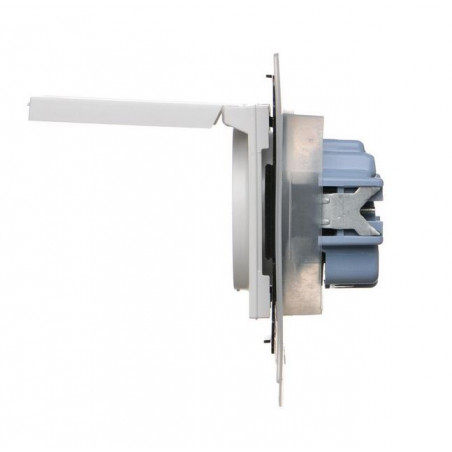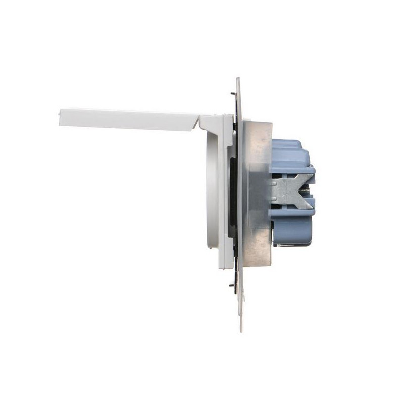 Wyposażone w uchylną klapkę w kolorze pokrywy, gniazdo zapewnia skuteczną ochronę styków przed kurzem i zachlapaniem. Wbudowane przesłony otworów prądowych zwiększają bezpieczeństwo użytkowania, chroniąc przed przypadkowym dostępem do elementów pod napięciem. Model z bolcem uziemiającym zapewnia zgodność z polskimi standardami instalacyjnymi.