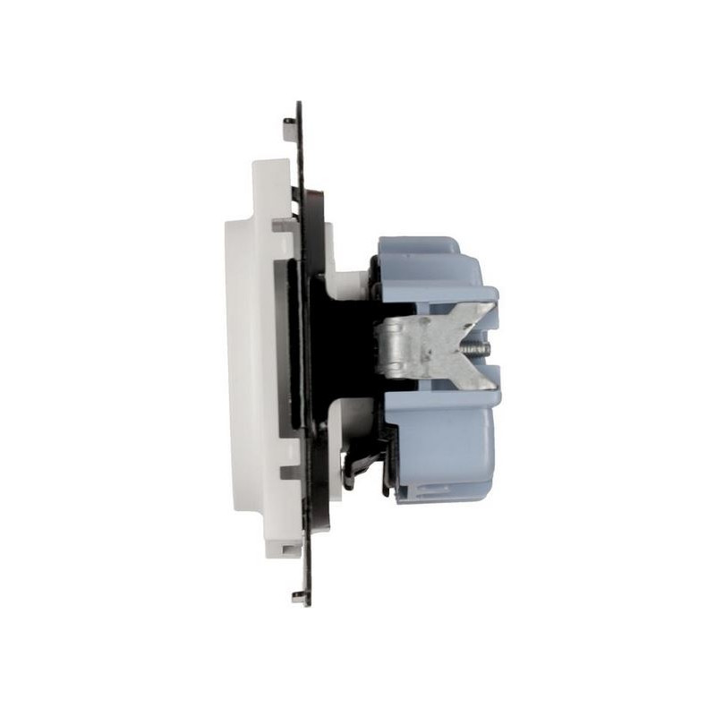Korpus gniazda wykonano z tworzywa PC bez halogenów, odpornego na uszkodzenia mechaniczne i działanie wysokiej temperatury. Matowa powierzchnia nie tylko dobrze wygląda, ale również zapobiega pozostawianiu śladów użytkowania. Produkt spełnia normy jakościowe i jest przeznaczony do użytku wewnętrznego, przy stopniu ochrony IP20.