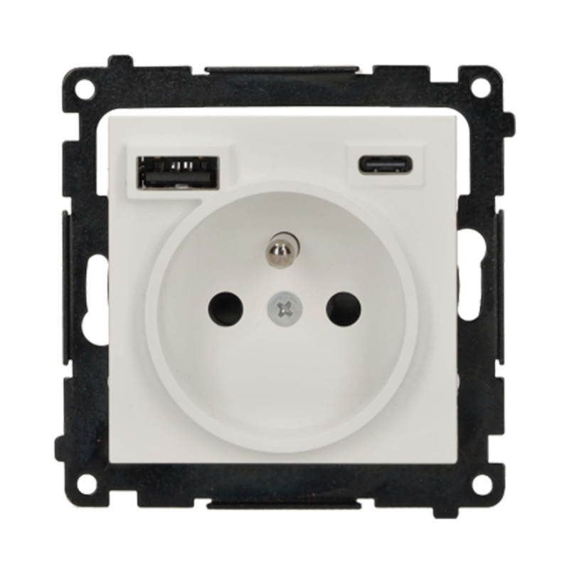 Moduł posiada dwa gniazda USB – typ C oraz typ A, umożliwiające ładowanie większości dostępnych na rynku urządzeń. Maksymalna moc ładowania wynosi 10,5 W (5 V DC / 2,1 A), co pozwala na szybkie i bezpieczne ładowanie. Dzięki uniwersalnemu napięciu wyjściowemu można korzystać z obu portów niezależnie.