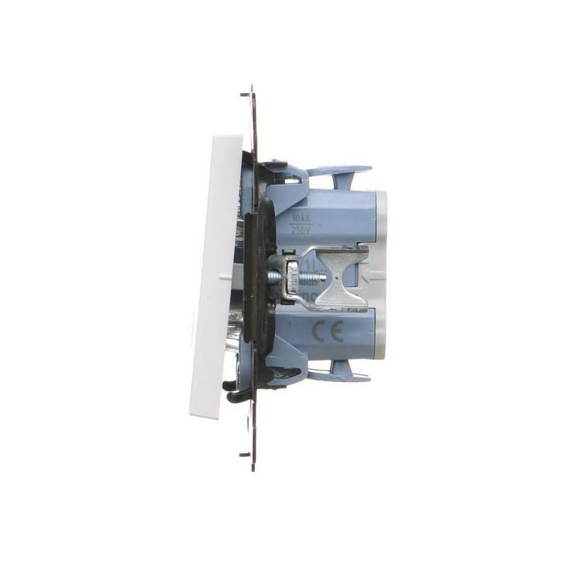 Urządzenie pracuje przy napięciu 250 V i obsługuje prąd znamionowy świetlówkowy do 10 AX, co gwarantuje jego stabilność i bezpieczeństwo. Dzięki zastosowaniu szybkozłączy, instalacja jest szybka i bezproblemowa. Montaż odbywa się podtynkowo, z możliwością mocowania na pazurki lub wkręty, co zwiększa elastyczność montażu.