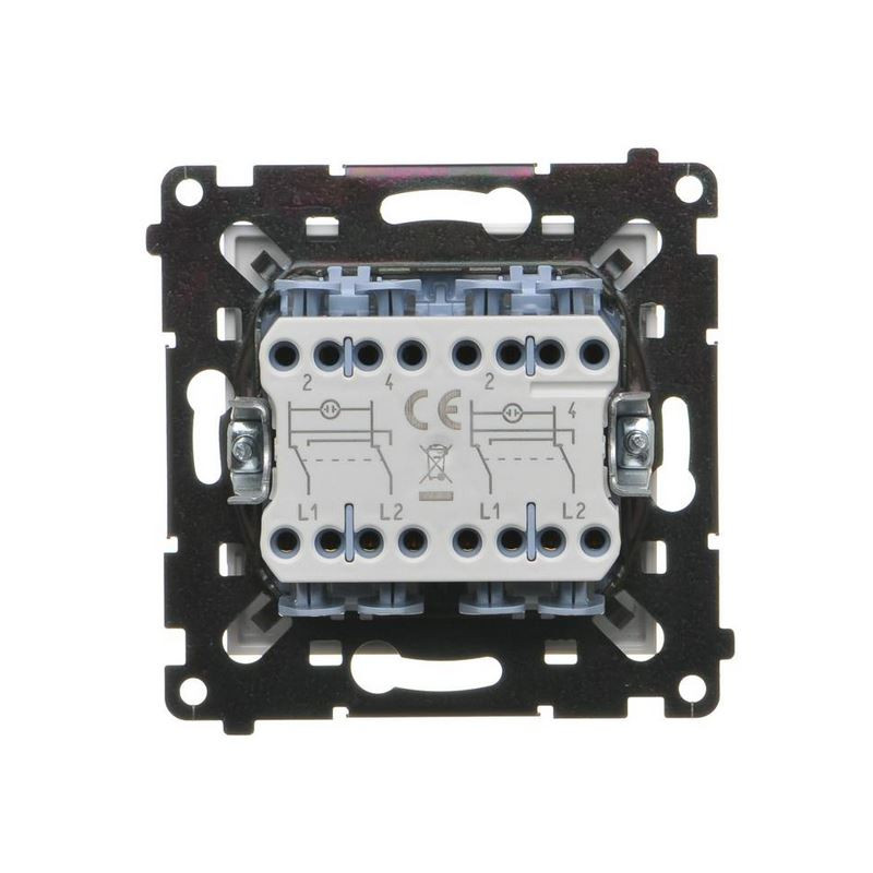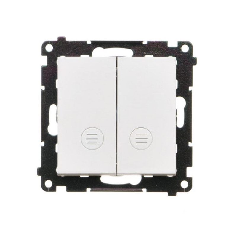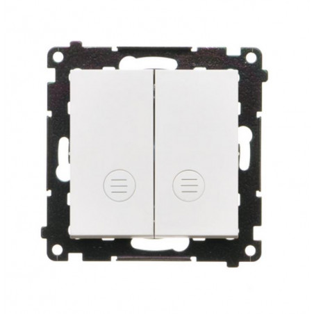 Dzięki wbudowanemu białemu podświetleniu LED, łącznik jest dobrze widoczny nawet w ciemności. Brak nadruków na klawiszach nadaje mu uniwersalny i elegancki charakter. Klawisze kołyskowe zapewniają wygodną i cichą obsługę.