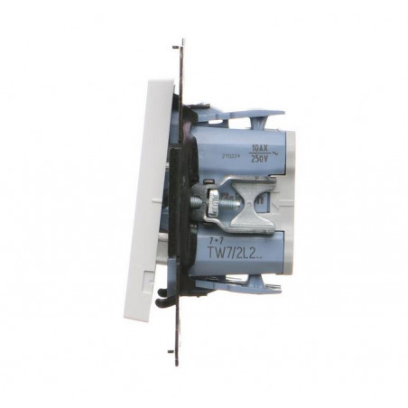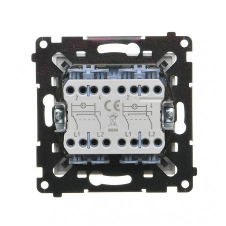 Produkt wykonano z bezhalogenowego tworzywa PC, odpornego na uszkodzenia i działanie czasu. Montaż podtynkowy możliwy jest za pomocą pazurków lub wkrętów, co zwiększa elastyczność instalacji. Dzięki układowi krzyżowemu (bistabilnemu) łącznik idealnie sprawdzi się w bardziej rozbudowanych układach oświetleniowych.