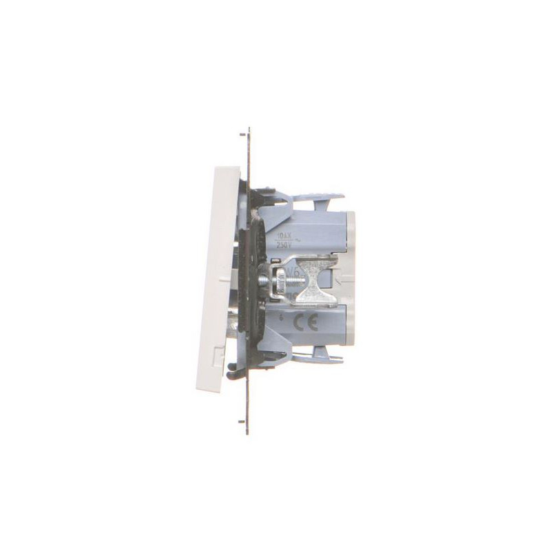Dzięki systemowi szybkozłącz instalacja łącznika przebiega szybko i sprawnie. Produkt przeznaczony jest do montażu podtynkowego i można go łatwo zamocować za pomocą pazurków lub wkrętów. Klawisz kołyskowy zapewnia komfortowe i precyzyjne użytkowanie na co dzień.