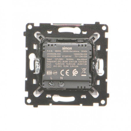 Ładowarka USB podwójna Simon 55 to praktyczne rozwiązanie do zasilania urządzeń mobilnych bez potrzeby stosowania adapterów sieciowych. Zintegrowane z serią modułową, oferuje dwa gniazda – USB-A i USB-C – o łącznej mocy do 30 W.