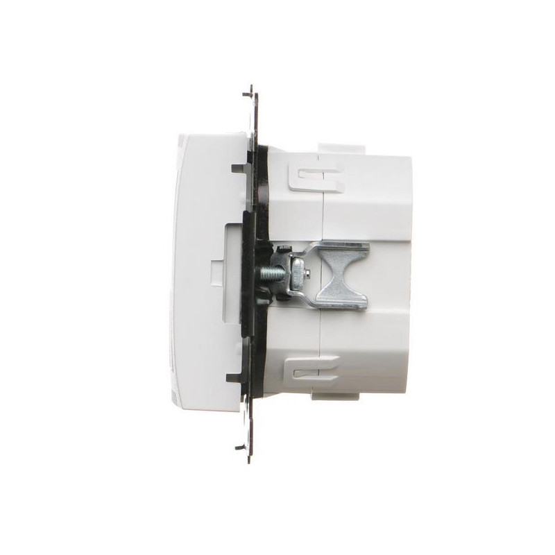 Obudowa wykonana jest z bezhalogenowego tworzywa PC o matowym wykończeniu, co zapewnia trwałość oraz nowoczesny wygląd. Kolor biały (RAL 9003) pasuje do większości wnętrz, zarówno klasycznych, jak i nowoczesnych. Montaż odbywa się podtynkowo, z wykorzystaniem pazurków lub wkrętów, co ułatwia instalację.