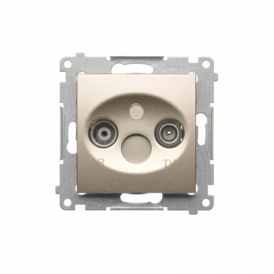 Gniazdo antenowe Simon54 R TV końcowe separowane DAK.01/44 w kolorze złotym matowym to eleganckie i funkcjonalne rozwiązanie do instalacji antenowych. Wykonane z wysokiej jakości materiałów, gniazdo łączy w sobie nowoczesny design z solidną konstrukcją, oferując doskonałą jakość sygnału i estetyczne wykończenie. Gniazdo to, z metalizowanym wykończeniem w kolorze złotym matowym, wyróżnia się na tle standardowych instalacji antenowych, dodając elegancji i nowoczesności każdemu wnętrzu. Zabezpieczenie powierzchni lakierowaniem zapewnia trwałość i odporność na codzienne użytkowanie, utrzymując estetyczny wygląd produktu przez długi czas.