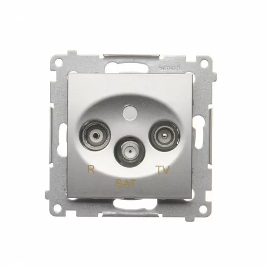 Simon54 gniazdo antenowe R-TV-SAT przelotowe DASP.01/43 w kolorze srebrnym, z eleganckim matowym i metalizowanym wykończeniem, to nowoczesne rozwiązanie dla instalacji antenowych. Gniazdo zostało zaprojektowane z myślą o prostocie instalacji i wysokiej funkcjonalności. Podłączenie odbywa się za pomocą wtyków oraz zacisków śrubowych, co gwarantuje stabilność połączeń oraz długotrwałą i niezawodną pracę. Dzięki temu rozwiązaniu, użytkownik ma pewność, że instalacja jest solidnie wykonana, a sygnał przesyłany bez zakłóceń.