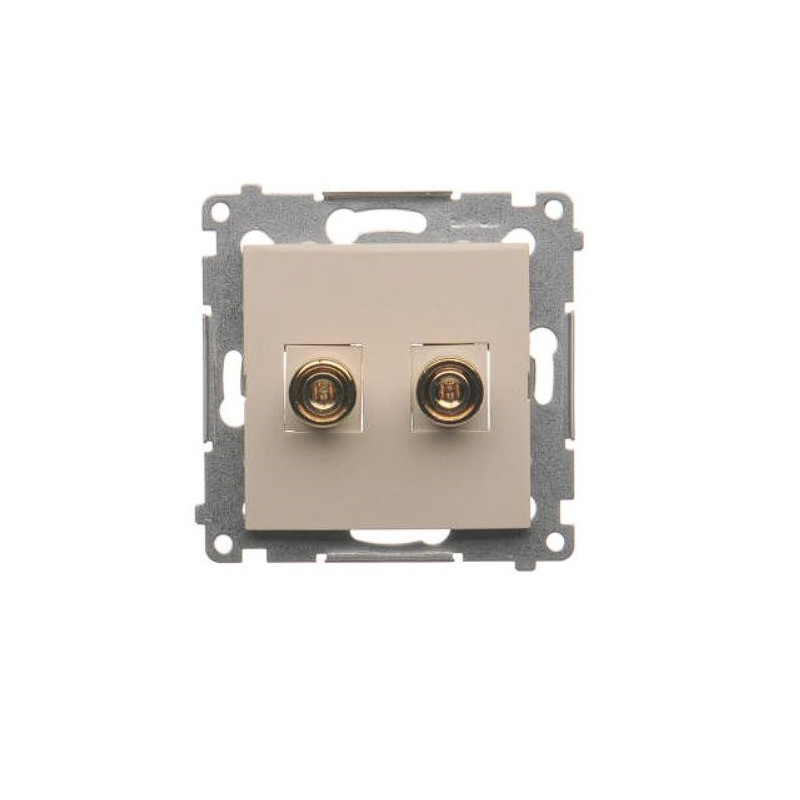 Simon54 Gniazdo głośnikowe 1-krotne DGL2.01/41 w kolorze kremowym marki Kontakt Simon to nowoczesny i funkcjonalny element instalacji elektrycznej, który doskonale sprawdzi się w systemach audio, umożliwiając estetyczne i bezpieczne podłączenie kolumn głośnikowych w pomieszczeniach mieszkalnych czy biurowych. Kremowy kolor nadaje produktowi elegancki, subtelny wygląd, dzięki czemu gniazdo idealnie komponuje się z większością wnętrz, niezależnie od ich stylu aranżacyjnego. Gniazdo głośnikowe jest przystosowane do podłączenia jednej kolumny głośnikowej, co czyni je odpowiednim rozwiązaniem w przypadku indywidualnych instalacji audio, zarówno w systemach kina domowego, jak i w dedykowanych pomieszczeniach do słuchania muzyki. Dzięki możliwości podłączenia przewodów o przekroju do 6 mm², zapewnia wysoką jakość dźwięku i minimalizuje straty sygnału, co jest niezwykle istotne dla audiofilów i osób dbających o najwyższą jakość odsłuchu.