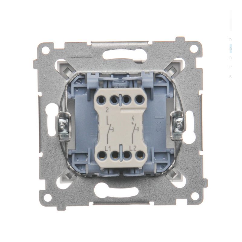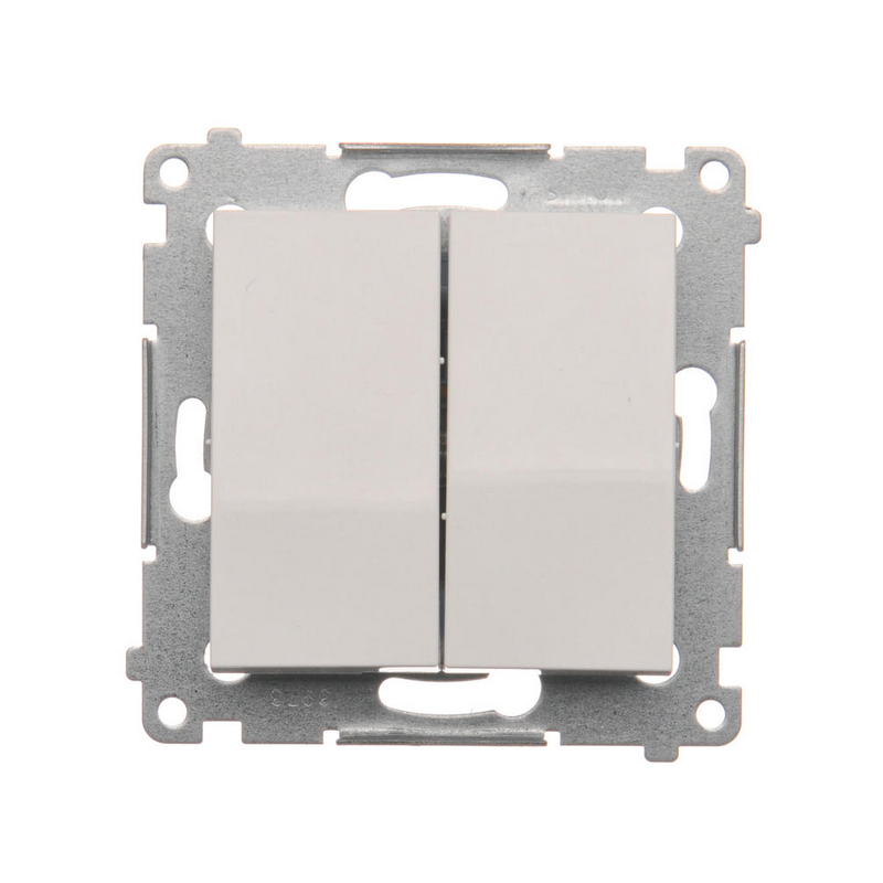 Podwójny przycisk zwierny Simon54 to praktyczne urządzenie przeznaczone do sterowania dwoma niezależnymi obwodami w instalacjach elektrycznych. Dzięki dwóm klawiszom umożliwia wygodne załączanie różnych funkcji – np. oświetlenia w dwóch pomieszczeniach lub sterowania dwoma niezależnymi lampami w tym samym pomieszczeniu. Wykonany z bezhalogenowego tworzywa PC o błyszczącej powierzchni, prezentuje elegancki i nowoczesny wygląd w białym kolorze.