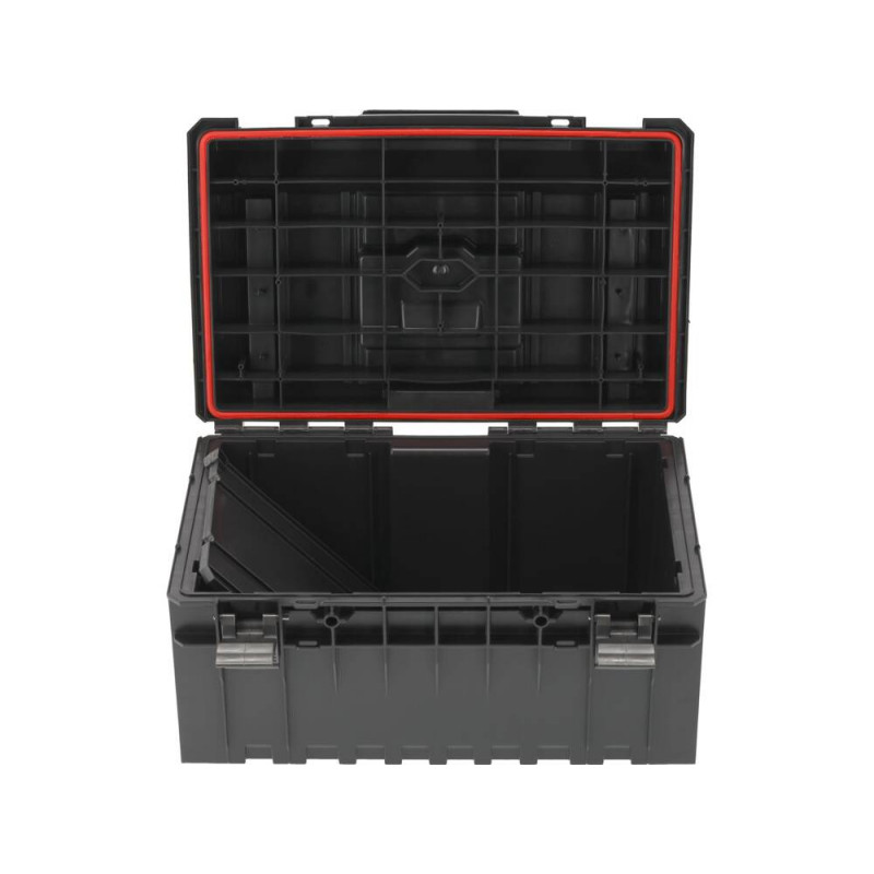 - Możliwość łączenia z innymi skrzyniami i organizerami systemowymi dzięki zapięciom bocznym.