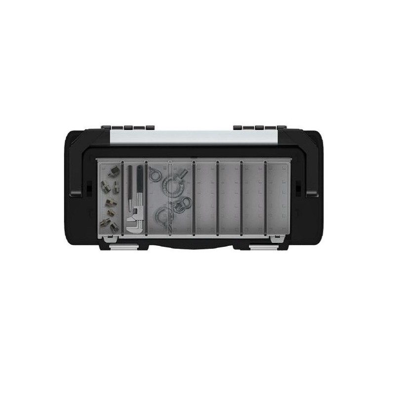 Korpus skrzynki wykonany jest z polimerów o dużej wytrzymałości, co czyni ją odporną na uszkodzenia mechaniczne i czynniki zewnętrzne. Pokrywa z poliwęglanu zapewnia dodatkową ochronę przed kurzem, wodą i przypadkowymi uszkodzeniami, chroniąc zawartość skrzynki nawet podczas trudnych warunków pracy na placu budowy czy w warsztacie. Zarówno klamra ze stali ocynkowanej, jak i ergonomiczna rączka wzmocniona aluminium, zapewniają nie tylko solidne zabezpieczenie zawartości skrzynki, ale także wygodę w transporcie nawet przy maksymalnym obciążeniu do 25 kilogramów.