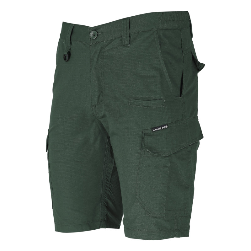 Spodenki krótkie zielone to wytrzymały i praktyczny wybór dla osób, które cenią sobie swobodę ruchów, komfort w trakcie pracy oraz na co dzień. Wyprodukowane przez firmę LAHTI PRO, są one wykonane w 35% z bawełny i w 65% poliestru.