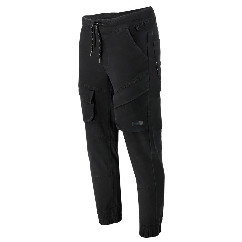 Spodnie posiadają sześć praktycznych kieszeni, w tym dwie zapinane na napy, co zapewnia wygodne przechowywanie niezbędnych przedmiotów podczas pracy. Regulowany sznurek i ściągacz w pasie umożliwiają łatwe dopasowanie spodni do indywidualnych preferencji użytkownika. Nogawki zakończone ściągaczem elegancko eksponują obuwie i dodają joggerom nowoczesnego wyglądu.