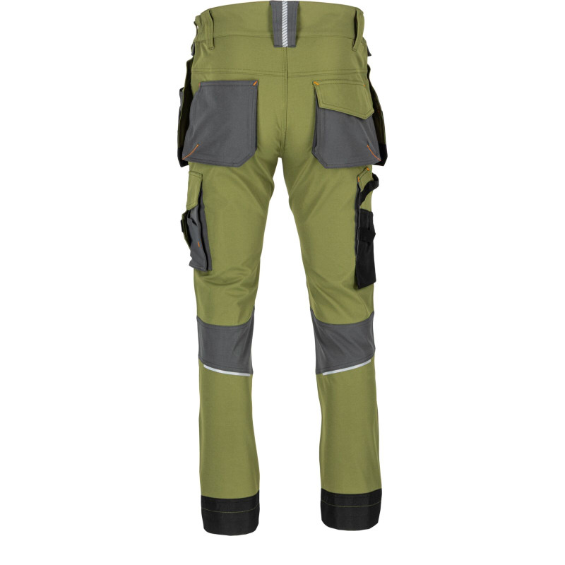 Spodnie wyposażono w elementy odblaskowe, które poprawiają widoczność użytkownika w warunkach słabego oświetlenia. Kieszenie na ochraniacze kolan wykonane z odpornego materiału rip-stop zwiększają komfort pracy na kolanach.
