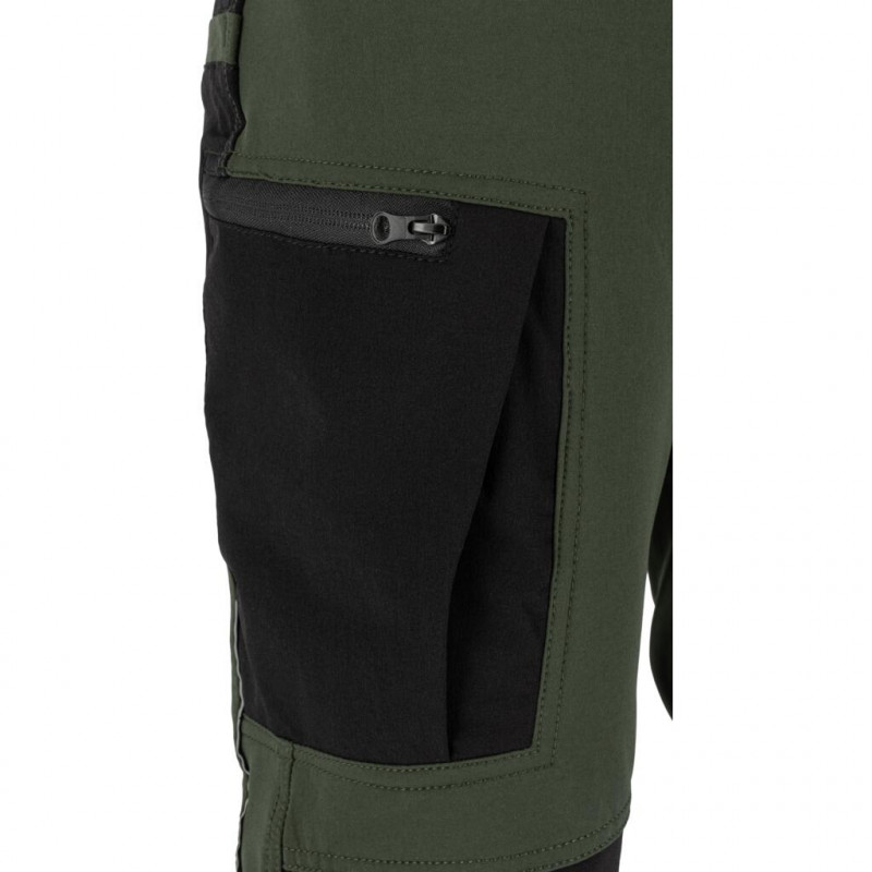 Podwójne szwy oraz dodatkowe wzmocnienia w kroku zwiększają wytrzymałość spodni, a wzmocniony dół nogawek z materiału 600D poliester chroni przed przetarciami. Możliwość wydłużenia nogawek o 2,5 cm pozwala na indywidualne dopasowanie długości do potrzeb użytkownika.