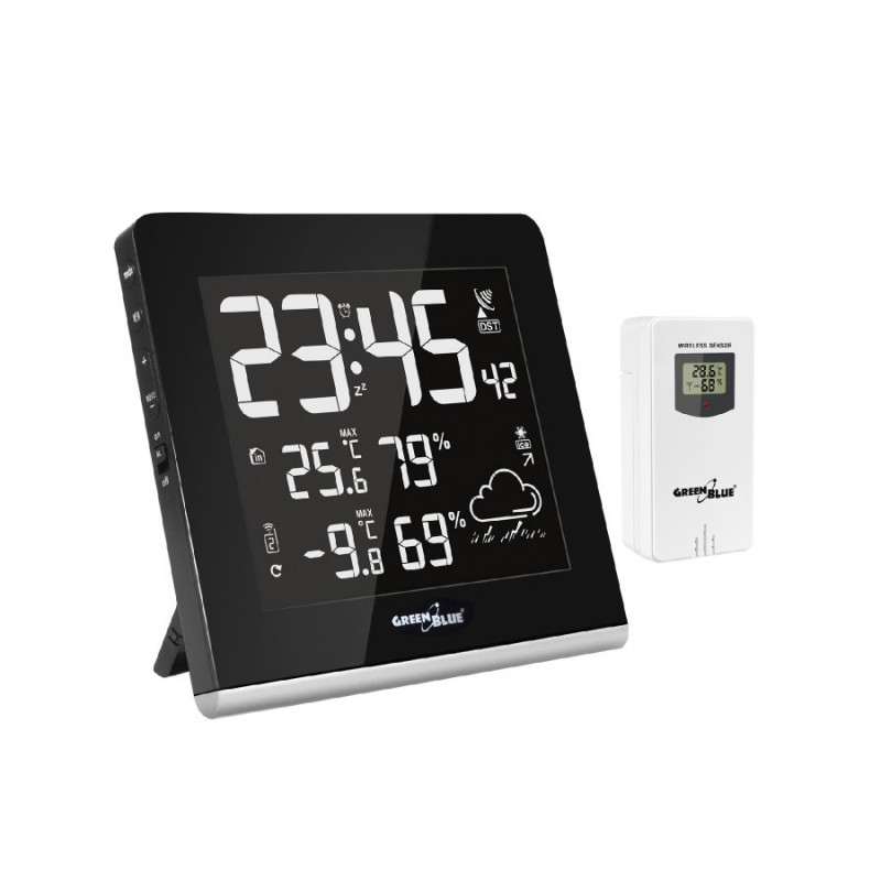 Stacja pogodowa GB151 DCF 9-kolorów marki GREENBLUE to nowoczesne i funkcjonalne urządzenie, które nie tylko informuje o aktualnych warunkach pogodowych, ale także prezentuje te dane w estetyczny i czytelny sposób. Wyposażona w duży, nowoczesny wyświetlacz VA LCD z możliwością wyboru spośród aż 9 różnych kolorów podświetlenia, zapewnia doskonałą czytelność, nawet z większej odległości. To idealne rozwiązanie dla osób, które cenią sobie zarówno funkcjonalność, jak i atrakcyjny wygląd urządzeń. Duże cyfry na wyświetlaczu gwarantują przejrzystość danych, co jest szczególnie przydatne dla osób mających problemy ze wzrokiem. Bezprzewodowy czujnik temperatury zewnętrznej, który posiada własny wyświetlacz ciekłokrystaliczny, mierzy zarówno temperaturę, jak i wilgotność na zewnątrz. Zasięg czujnika wynosi do 60 metrów w otwartym terenie, co pozwala na umieszczenie go w dogodnym miejscu, bez konieczności kłopotliwego okablowania. Wykorzystując radiową kontrolę czasu DCF, stacja zapewnia dokładne i automatyczne ustawienie czasu, bez potrzeby ręcznej korekty.