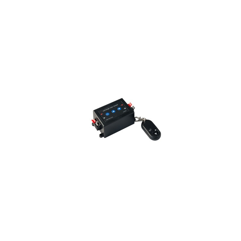 Ściemniacz do LED MW-CTR-MONO-8A-02 od MW LIGHTING to innowacyjne urządzenie zaprojektowane do sterowania diodami jednobarwnymi, które doskonale współpracuje zarówno z taśmami LED, jak i modułami LED. Jednym z kluczowych atutów tego ściemniacza jest transmisja radiowa RF, która zapewnia wygodę i elastyczność w użytkowaniu. Zestaw ściemniacza zawiera pilot (nadajnik) oraz sterownik, co pozwala na bezproblemowe dostosowanie jasności oświetlenia. Co więcej, ściemniacz umożliwia włączenie i regulację jasności także z poziomu samego sterownika, co jest przydatne w sytuacjach, gdy pilot nie jest pod ręką. To połączenie funkcjonalności sprawia, że korzystanie z tego urządzenia jest wyjątkowo wygodne.