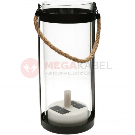 Lampka solarna w stylu industrialnym, sprawdzi się jako dekoracyjne i praktyczne oświetlenie Twojego ogrodu. Ciekawy model latarenki będzie wyjątkowym dodatkiem w Twoim ogrodzie. Podstawa oświetlenia jest wykonana ze stali lakierowanej w kolorze czarnym. Dodaje to jej charyzmy oraz mocno nowoczesnego stylu. Lekkości całej lampie nadaje szklany klosz w bardzo prostej formie walca. Dodatkowym a zarazem funkcjonalnym elementem tej lamy jest ozdobny uchwyt, który został wykonany z grubego brązowego sznura. Pozwala on na szerszy zakres wykorzystania lamy. Ciepła barwa światła będzie zachwycająco rozpraszać się po Twoim ogrodzie. Oświetlenie posiada efekt palącej się świecy. Jako źródło światła zastosowano diodę LED.