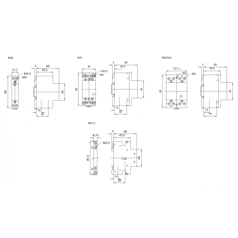 - Dostępna wersja w wykonaniu 4-biegunowym o szerokości tylko 2 modułów (R25).
