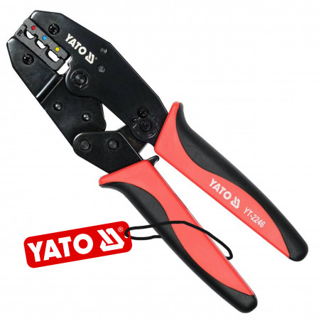 Szczypce YATO to profesjonalne narzędzie przeznaczone do zaciskania konektorów izolowanych o przekrojach od 0,5 mm² do 6 mm². Dzięki wbudowanemu mechanizmowi zapadkowemu z regulacją siły docisku, użytkownik może wykonywać precyzyjne połączenia bez ryzyka niedociśnięcia lub uszkodzenia przewodów.