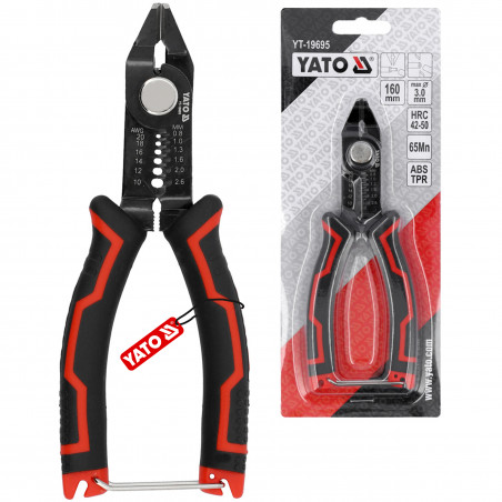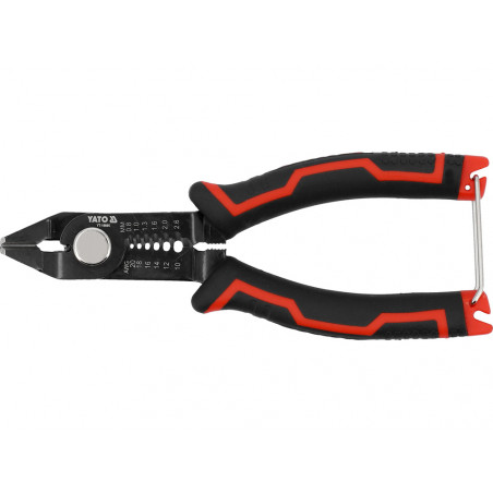 Szczypce boczne YATO to wielofunkcyjne narzędzie idealne do cięcia przewodów i ściągania izolacji. Dzięki precyzyjnym ostrzom z hartowanej stali sprężynowej 65Mn umożliwiają dokładne cięcie przewodów o maksymalnej średnicy 3 mm. Dodatkowo, narzędzie umożliwia łatwe ściąganie izolacji z przewodów o przekrojach od 0,8 mm² do 2,6 mm², co czyni je idealnym rozwiązaniem dla elektryków.