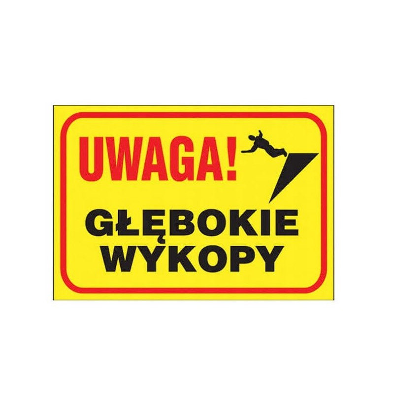 Tabliczka ostrzegawcza "Uwaga! Głębokie wykopy" TAB-639 ANRO to praktyczne narzędzie służące do informowania o niebezpieczeństwach związanych z pracami ziemnymi, takimi jak wykopy czy prace budowlane. Dzięki wyraźnej formie i odpowiednio dobranej kolorystyce, tabliczka skutecznie ostrzega przechodniów, kierowców oraz innych użytkowników terenu przed potencjalnym zagrożeniem, które może wynikać z obecności głębokich wykopów.