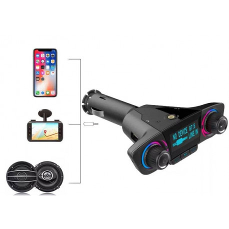 1. Transmiter za pomocą Bluetooth 5.0 + EDR łączy się ze źródłem dźwięku (np. telefon, tablet) i transmituje dźwięk w wysokiej jakości za pomocą fal FM do radia samochodowego.