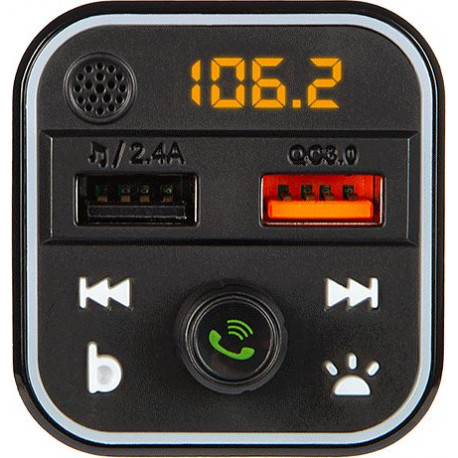 Transmiter to urządzenie które powinno znaleźć się w każdym samochodzie zarówno osobowym, dostawczym jak i ciężarowym. Transmiter wyposażony jest w złącze AUX, co pozwala na przesyłanie muzyki do urządzenia -> radia za pomocą kabla Jack w jakości oryginalnej. Kolejne zastosowanie urządzenia to ładowarka samochodowa obsługująca szybkie ładowanie urządzeń w standardzie szybkiego ładowania. Ładowarka posiada wielostopniowy system ochrony zapewniający stabilną i bezpieczną pracę, jednocześnie eliminując ryzyko uszkodzenia ładowanego urządzenia.