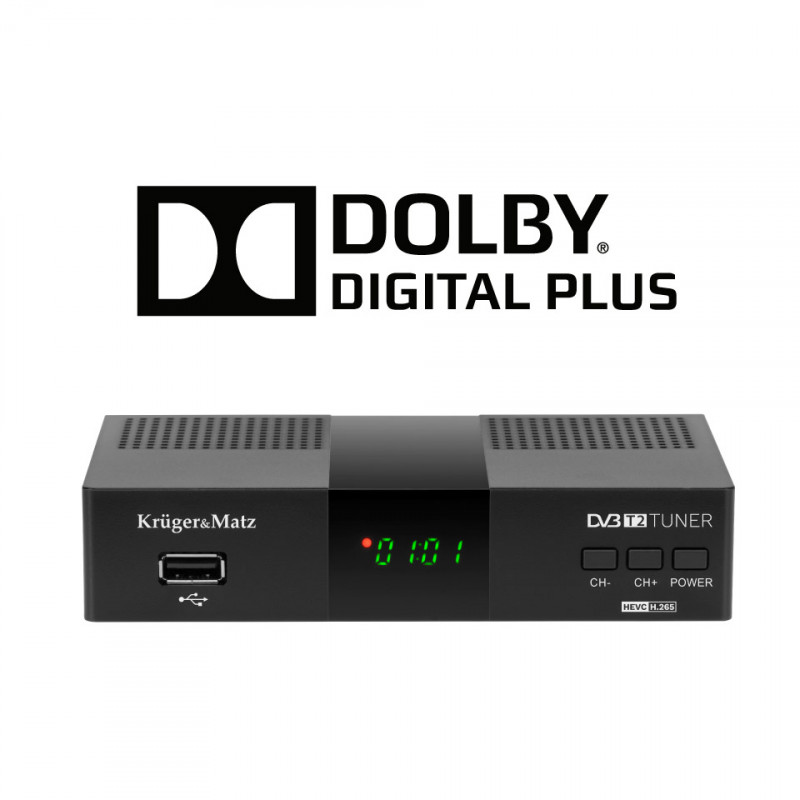 Tuner Kruger&Matz odtwarza dźwięk zgodnie ze standardem kodowania E-AC-3. Dzięki temu możesz w zaciszu własnego domu możesz poczuć się jak w kinie. Jakość Dolby Digital Plus to doskonałej jakości, przestrzenny dźwięk Twoich ulubionych filmów i programów.