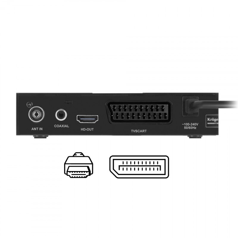 Tuner Kruger&Matz KM0550D wyposażony został w gniazdo HDMI, które umożliwia podłączenie do wszystkich nowszych modeli telewizorów i oglądanie programów w jakości FullHD. Jeśli jednak posiadasz starszy model TV, bez problemu podłączysz tuner za pomocą złącza SCART, potocznie zwanego eurozłączem.