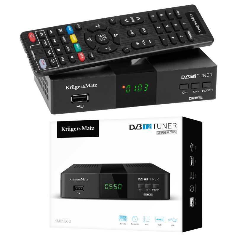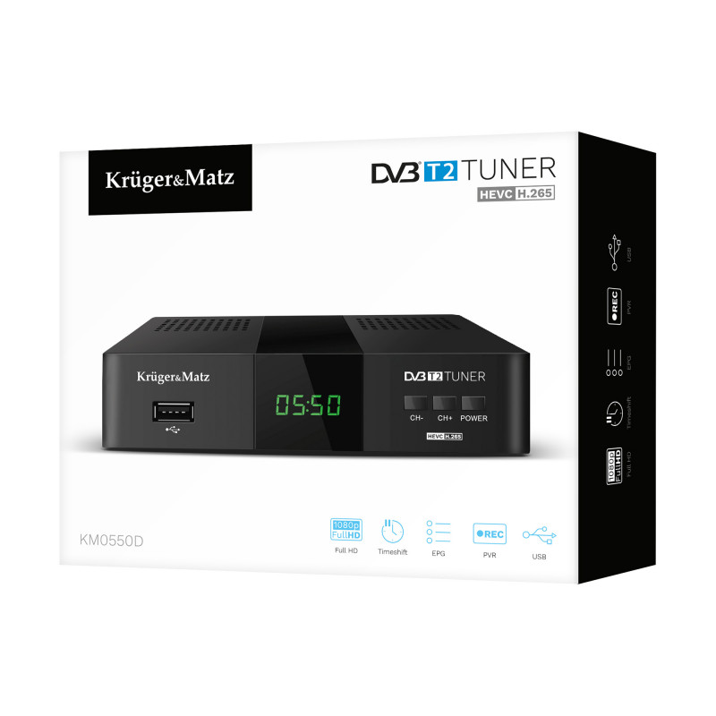 Twój stary dekoder telewizji naziemnej odmawia posłuszeństwa i zastanawiasz się jaki tuner DVB-T kupić? Wybierz model KM0550 marki Kruger&Matz z procesorem Ali 3822P, który umożliwia odbiór kanałów cyfrowych w standardzie DVB-T i DVB-T2. Co więcej, tuner dvb t Kruger&Matz obsługuje wiele formatów, m.in. H.265 HEVC, dzięki czemu gwarantuje prawidłowe działanie po wprowadzeniu zmian standardu kodowania.