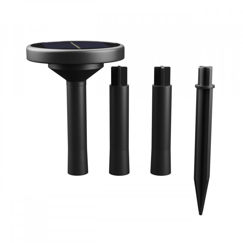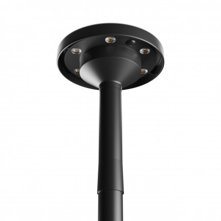 Dzięki nowoczesnemu designowi i klasycznej czerni lampa świetnie komponuje się z roślinnością, ścieżkami i tarasami.